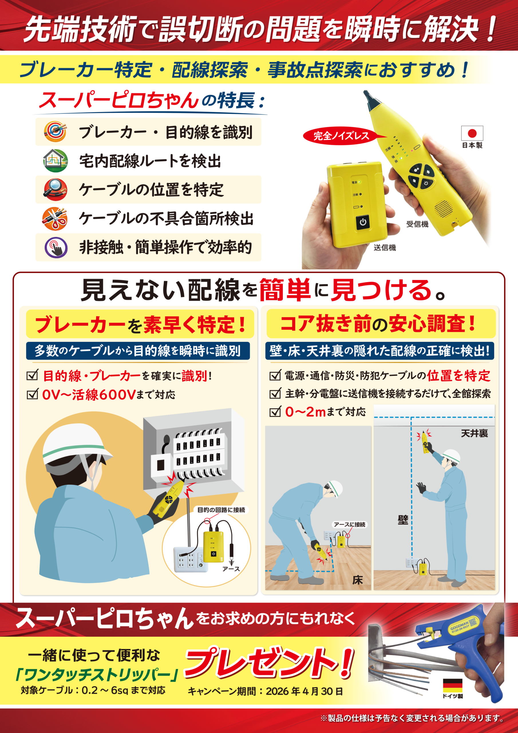 配線作業の効率アップにすぐ役立つ便利アイテムを進呈します。