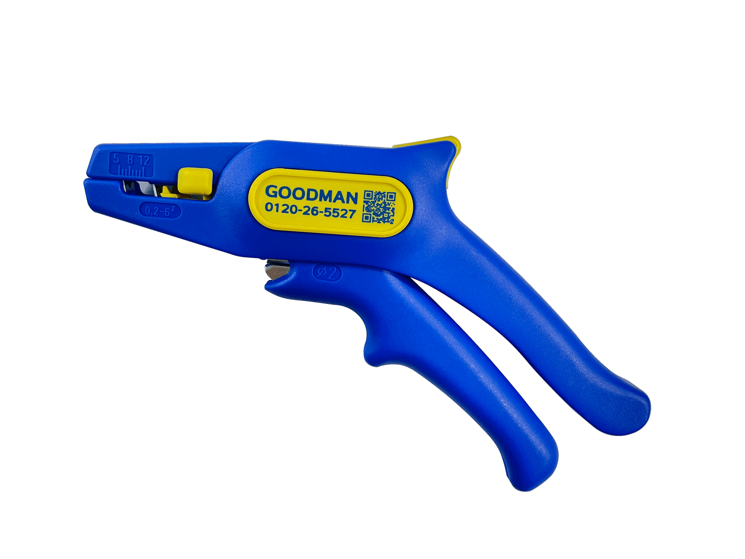 - 芯線に傷をつけること無く被覆が剥けるV字カットされた独自の刃を採用